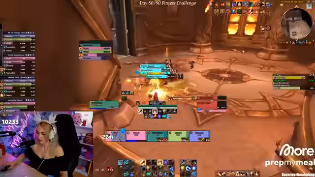 02:39:15Nachdem die Streamerin über ihre neue Lebensphase und ihren neuen Job spricht, kehrt sie zum Gameplay zurück. Sie hat Schwierigkeiten, ihre Buffs wie Source of Magic richtig zu verteilen und sucht nach dem richtigen Attunement für ihren Evoker. Es kommt zu technischen Problemen mit der Interface-Anzeige, da sie keine Procs wie Living Flame erkennt. Die Streamerin testet neue Tastenbelegungen und Makros, um ihre Utility-Fähigkeiten wie Prescience besser einsetzen zu können, auch wenn dies im Kampf verwirrend wird.
