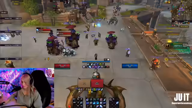 02:58:14Die Anpassung an das Plater-Addon und die Rotation des Death Knights erweisen sich als schwierig. Der Streamer kämpft damit, seinen Schaden zu optimieren und die richtigen Fähigkeiten zur richtigen Zeit einzusetzen. Er ist frustriert, dass er mit dem aktuellen Plater nicht spielen kann und muss feststellen, dass sein Kick-Makro und Fokus-Target noch nicht richtig gebunden sind. Dies führt zu Problemen im Kampf, wo er keinen ausreichenden Schaden verursachen kann und sogar stirbt. Er überlegt, ob er während des Keys Änderungen vornehmen kann, entscheidet sich aber für einen Reload, um seine Einstellungen zu aktualisieren. Die Unsicherheit bezüglich der Rotation und der Priorität der Fähigkeiten, insbesondere von Frostgüte und Obliterate, wird im Chat diskutiert, wobei er versucht, die besten Strategien zu erlernen.