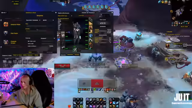 02:27:15Der Streamer bereitet sich auf den Dungeon vor, indem er die letzten Anpassungen an seiner Benutzeroberfläche vornimmt und unnötige Anzeigen deaktiviert. Die Suche nach passender Ausrüstung für den Todesritter, insbesondere nach einem Umhang, wird thematisiert. Es wird überlegt, ob es sich lohnt, Gold für Runen zu investieren, um die Waffen zu verzaubern. Die Diskussion über die Teilnahme an Keys mit unterschiedlichen Ausrüstungsständen und die Bereitschaft, Freunden zu helfen, die weniger Erfahrung oder Ausrüstung haben, steht im Vordergrund. Die Zusammenstellung einer Gruppe für einen 12er Key, bei der Rollen wie Tank und DD neu verteilt werden, wird organisiert. Die Herausforderungen, die sich aus der Kombination von Spielern mit unterschiedlichem Gear und Spielweise ergeben, werden offen angesprochen, um eine angenehme Spielerfahrung zu gewährleisten.