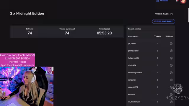 01:24:38In Zusammenarbeit mit Major wird ein Giveaway angekündigt: Zwei 'Midnight Edition'-Keys (normal und epic) werden verlost, wobei Follower-Status für die Teilnahme erforderlich ist. Zudem wird ein Ticket-System für eine Feier bis nach Mitternacht eingeführt, um den Geburtstag des VIPs Africano zu feiern. Der Streamer betont die professionelle Organisation der Veranstaltung und ermutigt Zuschauer, bis in die Nacht zu bleiben und am Giveaway teilzunehmen.