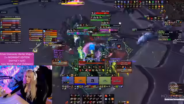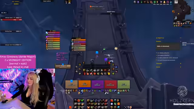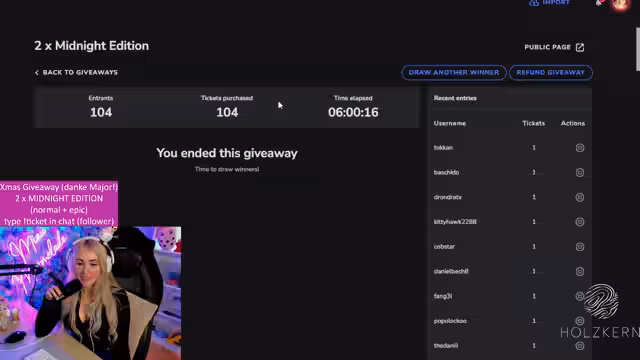 06:31:44Nach einem technischen Problem bei der Auslosung wird Happy Staff als Gewinner der Normal Midnight Edition bekanntgegeben. Major wird für die Sponsored Beta des WoW-Spiels gedankt und der Streamer erklärt, dass er eine Nachricht an den Moderator schicken muss, um den Code zu erhalten. Er zeigt Verständnis für die Nervosität des Gewinners und bietet Hilfe bei der Formulierung der Nachricht an.