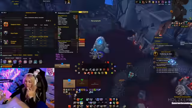 00:11:48Der Fokus liegt auf World of Warcraft, insbesondere auf dem Timing von Mythic+-Schlüsseln (Keys) wie 'Resi-Key' und 'Floodgate'. Der Streamer diskutiert Zeitmanagement, um Keys auf Level 21 zu timen, und optimiert seine Routen für den Dungeon 'Eco-Dom', da er mit aktuellen Routen unzufrieden ist. Er betont, dass Routen angepasst werden müssen, um erfolgreich zu sein, auch nach vielen Runs, und plant Verbesserungen für zukünftige Versuche.