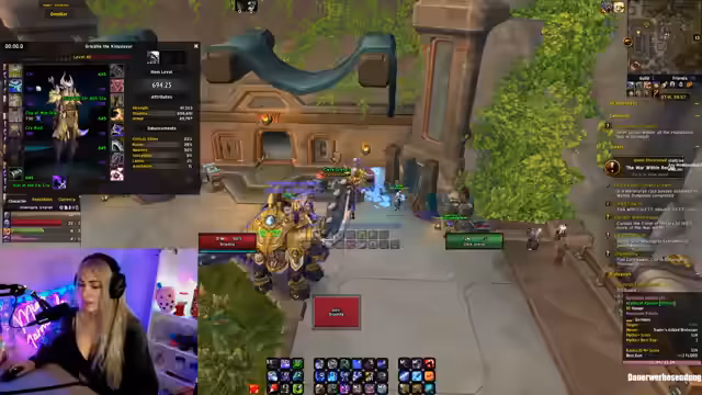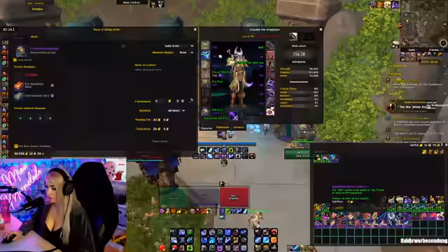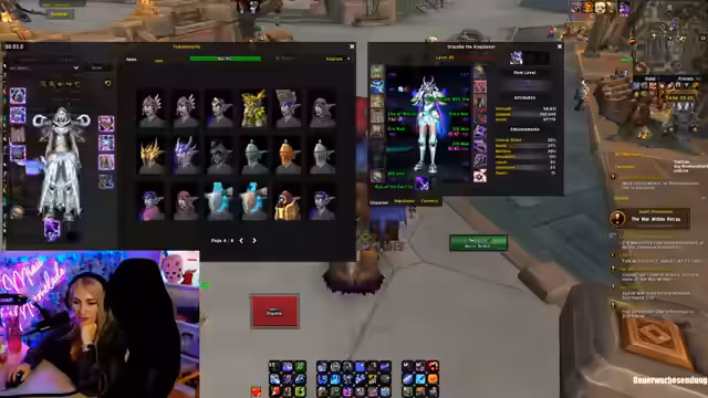 04:33:09Der Streamer plant, seinen Action-Button zu bebinden und diskutiert mögliche Ausrüstungs-Upgrades. Er überlegt, ob er sich Hände oder einen Halskette craften lassen sollte, da Hände im Dungeon droppen könnten. Er sucht aktiv im Chat nach einem Crafter für Plattenrüstungen mit den Stats Crit und Mastery. Dabei erwähnt er, dass er aktuell 711 Itemlevel erreicht hat und weitere Crafts wie Ringe oder einen Halskette in Betracht zieht, um sein Itemlevel weiter zu steigern.