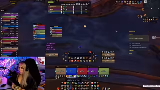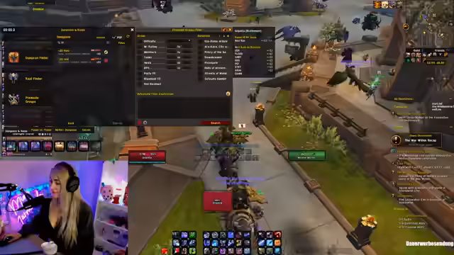 01:47:19Verschiedene Spieler werden im Chat erwähnt, mit denen gemeinsame Keys oder andere Aktivitäten geplant sind. Dazu gehören Josie, Witti, Nanox und Rigmetter. Es folgen Diskussionen über Dungeons wie Dawnbreaker und Arakara, wobei Arakara als besonders schwierig für hohe Keys eingestuft wird. Auch die Bewerbung für Mythoschrade-Gilden wird thematisiert, mit Tipps zum Loggen und Aufstieg in höhere Gilden-Ränge.
