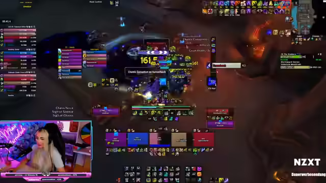 00:52:06Miaumarmelade beginnt einen 19er Key, wird aber durch mehrere technische Fehler und unglückliche Todesfälle behindert. Sie ist der Meinung, dass es an einem schlechten Kicking-Management liegt. Des Weiteren hat sie Probleme mit ihrem Makro zum Setzen des Fokus und wechselt versehentlich ihr Trinket, was den ersten Versuch scheitern lässt. Die Gruppe gibt schnell auf, da sie keinen Beam haben.