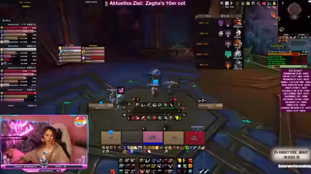 00:44:02Es wird die Frage in den Raum gestellt, wobei die Zuschauer Hilfe benötigen oder welche Keys sie gerne laufen würden. Die Streamerin bietet an, bei Dungeon-Runs zu helfen und fragt nach Wünschen der Zuschauer bezüglich bestimmter Dungeons oder Rio-Ziele. Es wird über die Kosten einer Piñata im Spiel diskutiert, die im Trading Card Game erworben werden muss. Ein Zuschauer äußert den Wunsch, einen bestimmten Dungeon in-time zu schaffen, woraufhin die Streamerin anbietet, als Tank auszuhelfen. Es wird eine Gruppe für einen Dungeon-Run erstellt und Zuschauer werden eingeladen, beizutreten. Die Streamerin äußert ihre Vorliebe für den Dungeon City und teilt ihre bisherigen Erfahrungen damit. Es wird über die Schwierigkeit verschiedener Tank-Klassen diskutiert und die Bedeutung von Anfeuerung während des Spiels hervorgehoben. Die Streamerin kündigt an, nach dem Key pinkeln zu gehen. Es wird über die Preise von Verbrauchsgegenständen im Spiel diskutiert und die Vermutung geäußert, dass diese in der nächsten Season teurer werden könnten.