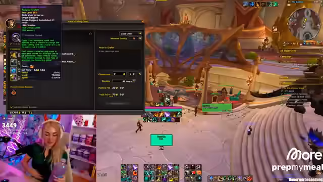 00:31:37Die Vorbereitung des Charakters für die bevorstehenden Aktivitäten steht im Mittelpunkt. Der Streamer überlegt, ob er eine Einhand- oder Zweihandwaffe craften soll und entscheidet sich für eine Zweihand-Waffe, da dies ressourcenschonender ist. Die Interaktion mit dem Partner Lucky ist hierbei entscheidend, da dieser für das Schmieden benötigt wird. Es wird die Verzauberung und die dazugehörigen Embellishments für Waffe und Ring diskutiert. Die Diskussion ist von Unsicherheit geprägt, da mehrere Meinungen im Chat kursieren und der Streamer sich für eine Variante entscheidet, die die Entwicklung kritischer Werte priorisiert.