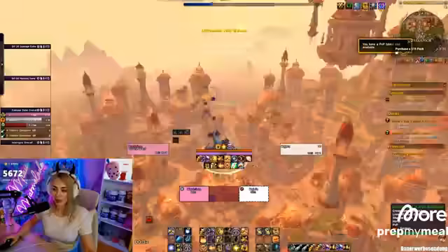 00:26:43Der Streamer wechselt den Charakter, um auf Level 90 zu kommen, und beginnt, in Dornogal Bienen zu töten, um XP zu farmen. Während des Levelns im Warmode kommt es zu PvP-Konfrontationen mit anderen Spielern. Diese Situationen lösen eine längere Diskussion über PvP im Allgemeinen und die unangenehmen Erfahrungen des Streamers mit dem System aus. Er berichtet von Traumas aus der Vergangenheit, in denen er unboostable war, und überlegt, lieber die Klasse zu wechseln, als Zeit im PvP zu verschwenden. Es wird auch die Möglichkeit des Delve-Tour-Events als alternative, effizientere Methode zum Leveln angesprochen.