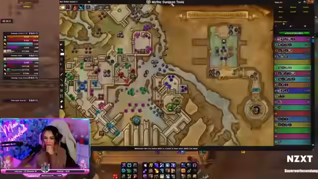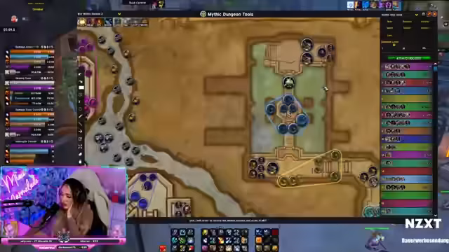 00:30:41Der Mplus-Run beginnt für das Team. Nach einem eher holprigen Start beim ersten Boss "Theatre of Pain" kämpft sich das Team weiter durch den Dungeon. Es wird über die Bewegungsmuster von Bossen und deren Schwierigkeiten diskutiert, wobei es zu Verwirrung und Fehlern kommt. Dennoch gelingt es dem Team, den zweiten Boss "Kael'thas Sunstrider" zu besiegen, was trotz einiger Todesfälle und verpasster Damage-Checks geschafft wird. Der Run fühlt sich anfangs chaotisch an, wird aber als gute Lernerfahrung gewertet.