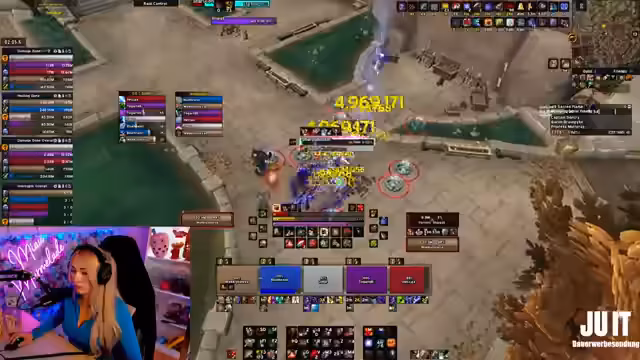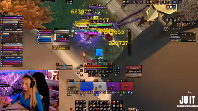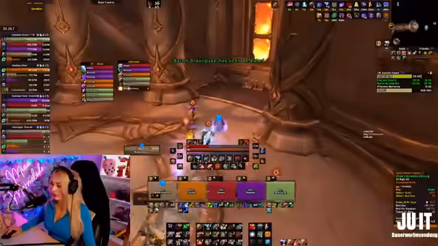 04:09:40Die Spielerin betont die Schwierigkeit, einen 20er-Dungeon zu tanken und gleichzeitig den Chat zu lesen. Sie wird von einem Mob gemobbt, da sie eine Nachricht nicht gelesen hat. Ein Pull wird als super schwer empfunden, da sie kein AOE hat. Sie schafft es, einen Pull zu beenden, obwohl es schwierig war, das Aggro von bestimmten Gegnern zu halten. Ein Caster zieht Aggro, was nicht passieren sollte, da in diesem Abschnitt Full Single Target auf den Boss gegangen werden muss. Ein unerwarteter Tod durch Lava führt zu einer schlechten Zeit von 12 Minuten. Die Spielerin kann nicht springen und hat Schwierigkeiten mit den Casts der Gegner. Ein Hunter rennt vor, was zu einem weiteren unvorhersehbaren Problem mit dem Boss führt, da der Platz begrenzt ist. Trotz einer unschönen Situation gelingt es dem Team, den Boss zu besiegen, jedoch mit nur dreieinhalb Minuten Restzeit. Die Spielerin bemerkt, dass sie keinen Pot mehr hat, obwohl sie normalerweise bei diesem Boss nicht pottet. Sie hat es nicht bemerkt, dass sie gepottet hatte, was zu Zeitverlust führte. Es wird diskutiert, ob sie den Pull anders hätte spielen können, indem sie zuerst einen Caster fokussiert hätte. Die Spielerin ist entschlossen, den Rang wieder hochzuspielen und plant, T2-Pots zu verwenden.