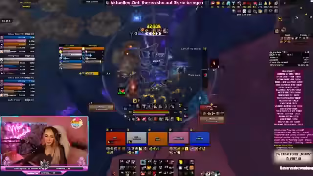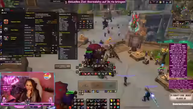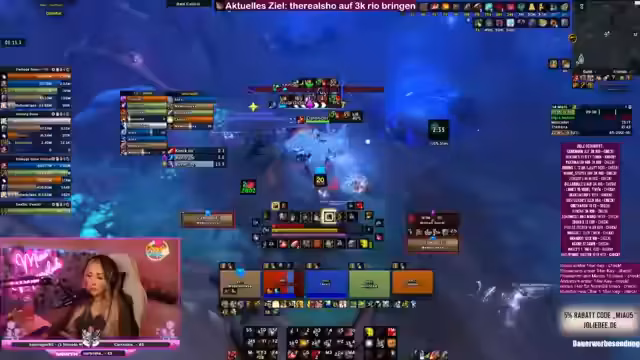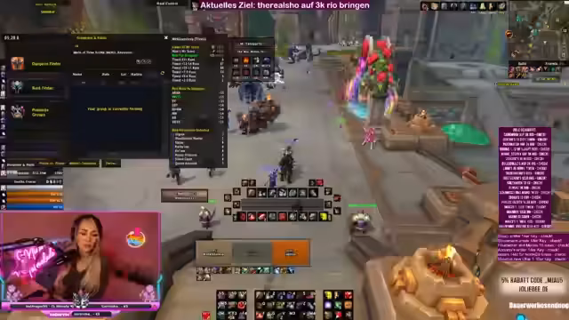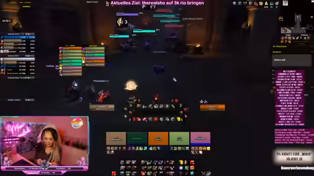 00:15:00Die Streamerin bietet der Community Hilfe bei M+ Schlüsseln und Rio-Zielen an. Sie erklärt, dass sie gemeinsam mit den Zuschavern ins Tool gehen können, um gute Einladungen für 15er oder 16er Schlüssel zu organisieren. Es werden spezielle Anfragen von Zuschauern erwähnt, die bei ihrem 3K Rio-Ziel Unterstützung benötigen. Die Streamerin betont, dass sie immer nach jedem Key fragt, wer noch Hilfe braucht oder zusammenlaufen möchte.
