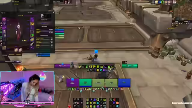 02:39:41Die Streamerin ist weiterhin unschlüssig, ob sie in der nächsten Saison als DH-Tank oder Krieger-Tank spielen soll. Sie wieft die Vor- und Nachteile ab und zockt weiterhin mit dem DH, um sich an die neuen Mechaniken zu gewöhnen. Während des Spiels treten mehrere technische Probleme auf. Sie gerät in einen Bug, der sie am Laufen hindert, und ist mit ihren Tastaturbelegungen (Bindings) und der optimalen Nutzung von Fähigkeiten wie Fell-Desolation und Metamorphose überfordert.