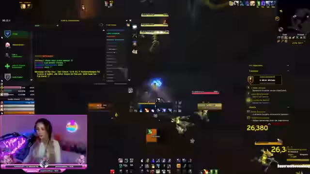 02:08:11Zu Beginn des Zeitraums ist die Streamerin verwirrt über ihre aktuelle Spielweise in Dornogal. Sie kann sich nicht entscheiden, ob sie die blauen Quests des Gebiets machen soll, da sie diese als nicht besonders lohnend empfindet. Stattdessen plant sie, sich auf das Farmen von Wählersteinen zu konzentrieren, um einen Umhang für ihren Twink aufzuwerten. Dabei ist sie sich unsicher, ob der Wählersteine-Cap von 2000 überschritten werden kann und ob das Farmen lohnenswert ist. Sie beklagt, dass ihr Twink bereits Investitionen erfordert, was sie als schade empfindet.