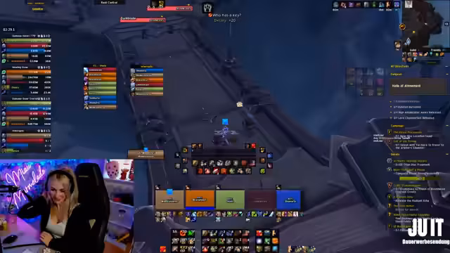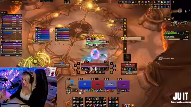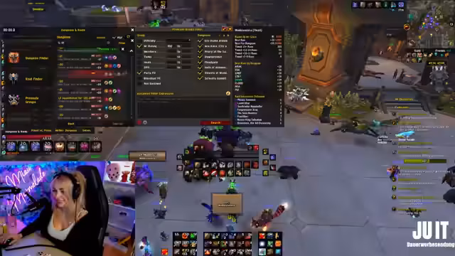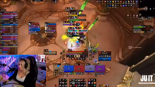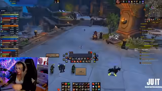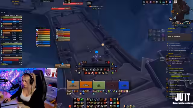 00:31:47Die Streamerin äußert ihre anhaltende Begeisterung für WoW, obwohl es manchmal frustrierend sein kann. Sie beschreibt ihre aktuellen Essgewohnheiten, die von einem gesunden Jewett-Gericht bis zu Marzipan-Creme und Weingummis reichen, was ihr Übelkeit bereitet. Sie scherzt über Zuckerschock und plant, am nächsten Tag auf Zucker zu verzichten. Die Streamerin interagiert weiterhin intensiv mit dem Chat, kommentiert Spielzüge und reagiert auf Pings und Kommentare der Mitspieler. Sie äußert Frustration über bestimmte Spielmechaniken und die Koordination im Team, besonders wenn Kicks nicht wie gewünscht funktionieren oder Mitspieler sie mit Pings provozieren. Die Streamerin betont, wie wichtig es ist, dass jeder seine Rolle im Spiel ernst nimmt und sich an Absprachen hält, um erfolgreiche Runs zu gewährleisten. Sie äußert auch ihre Müdigkeit und Heiserkeit, was sie auf einen möglichen Virus oder den Stress des Streamens zurückführt.