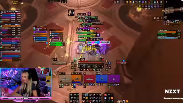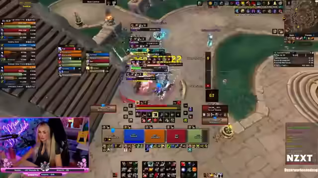 01:27:21Zu Beginn des Streamsabschnitts konzentriert sich die Streamerin auf das Management ihrer Heilungs- und defensiven Fähigkeiten, insbesondere ihren Avatar-Zustand. Sie experimentiert mit dem Timing und der Positionierung, um einen optimalen Schutz für die Gruppe zu gewährleisten. Gleichzeitig äußert sie Frustration über die häufigen Todesfälle der Tanks, die oft durch Bugs im Schiff-Areal verursacht werden. Sie erwähnt Probleme mit ihrer Wahrnehmung der Orb-Mechanik, die durch eine unzureichende Weak Aura noch verschärft wird, und plant, ihre Alarme zu verbessern, um besser reagieren zu können.