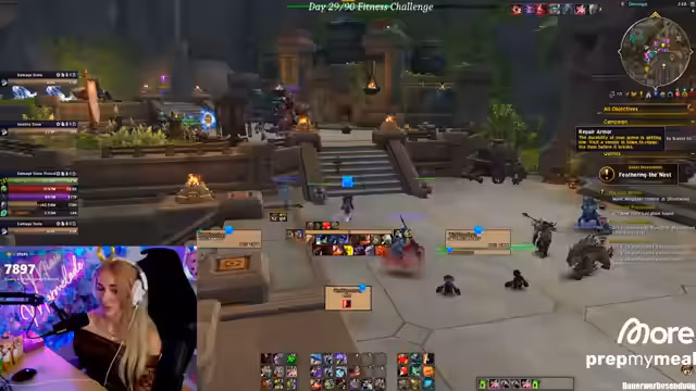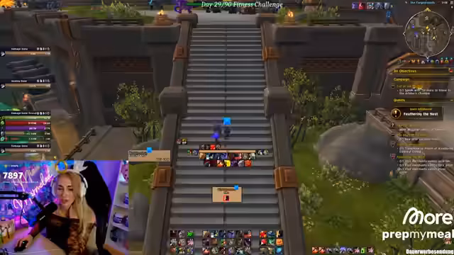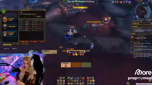 03:08:46Im Fokus des Streams steht das lang erwartete neue Interface. Die Streamerin präsentiert stolz ihr Ergebnis, das sie als wunderschön und funktional beschreibt und das ihr einen klaren Vorteil im Spiel verschafft. Ihr Ziel ist es, das Interface intensiv zu testen. Für einen Dungeon-Key wählt sie einen Death Knight und einen Hunter, um mindestens einen Heroic Reduce-Skill im Team zu haben. Sie erwähnt die After-Season, in der der Erfolg weniger wichtig ist als das Testen des neuen Setups.