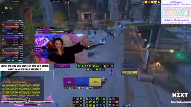01:52:54Der Stream kündigt das große Highlight des Abends an: das Glücksrad. Es gibt sowohl wertvolle Preise wie eine NZXT-Wireless-Maus im Wert von 90 Euro als auch Negativpreise, sogenannte „Nieten“. Die Streamerin betont, dass die Teilnehmer sich der Risiken bewusst sein müssen, da auch Vollnieten auf dem Rad sind. Gleichzeitig wird auf ein separates Tastatur-Giveaway hingewiesen, für das jeder mit einem Eintrag im Chat ein Los erhalten kann, mit der Auslosung am Freitagabend.