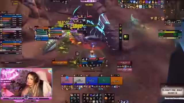01:15:39Die Streamerin und ihr Team spielen einen ihrer Schlüsselsteine live. Die Diskussion dreht sich um die perfekte Positionierung der Spieler, um gegenseitige Behinderungen zu vermeiden und den Damage zu maximieren. Es kommt zu dynamischen Situationen, in denen die Streamerin Backup-Pulls und rettende Fähigkeiten wie Freiheit und Heilung rechtzeitig einsetzt, um das Team vor dem Wipe zu bewahren. Die Kommunikation und Anpassung an das Verhalten der Bosse ist zentral für den Erfolg.