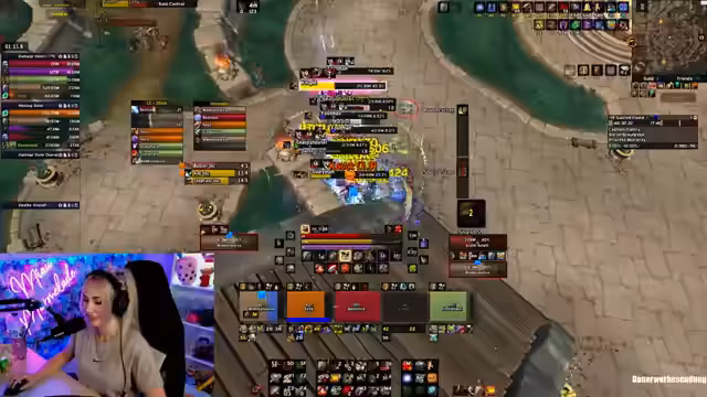01:16:20Der Streamer hat Probleme mit dem Timer in einem '+18'-Key. Ein Spieler stirbt und die Zeit wird knapp, was zu Frust führt. Sie können den Key nicht abschließen und müssen einen 18er noch einmal hochspielen. Sie kritisiert das Spielverhalten eines Spielers, der nicht kommuniziert hat, obwohl er in Kampf war. Sie erwähnt, dass sie immer wieder '+20 Floodgate'-Keys bekommt, aber dieses Mal nicht glücklich läuft.