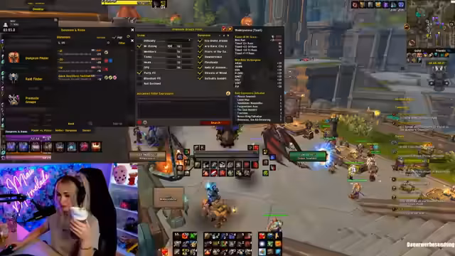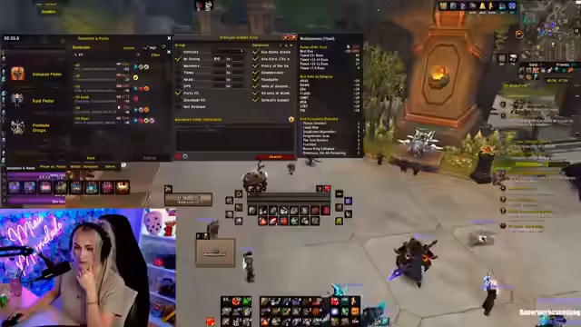 01:46:13Die Streamer hat Probleme, eine Gruppe für den 'Priory'-Dungeon zu finden. Sie bekommt keine Einladungen, obwohl sie einen 18er getimed hat. Sie kritisiert einen Paladintank, der seit 9 Minuten in der Gruppe ist, aber niemanden einlädt. Sie versucht, kurz pinkeln zu gehen, aber die Gruppe ist langsam und hat Probleme mit dem Timer. Sie ist frustriert, weil sie nicht in den Priory-Key rein kommt und den Key nicht spielen kann.