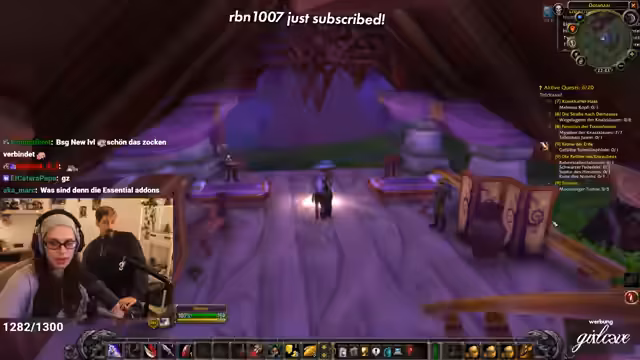 00:59:51Die Streamerin schließt sich mit anderen Spielern wie 'Tabina' zusammen, um gemeinsam zu leveln, insbesondere in Gebieten wie Sturmwind. Es gibt Diskussionen über Level-Unterschiede und deren Auswirkungen auf XP-Gewinne. Ein Highlight ist die Erwähnung des Charakters 'Killer-Furz', der an ihr vorbeiläuft. Die Gruppe plant, Quests gemeinsam zu erledigen, um das Spielerlebnis entspannter zu gestalten.