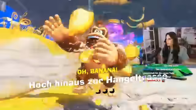 00:21:24Die Streamerin startet in das Spiel Donkey Kong Bonanza. Sie spielt den Charakter 'Monkey Boy' und erkundet die Spielwelt. Das Gameplay ist geprägt von Klettern, Schlagen und dem Sammeln von Bananen. Sie reagiert humorvoll auf die spielerischen Mechaniken und beschreibt die Welt als 'affengeil'. Es kommt zu ersten Begegnungen mit Gegnern wie Monstern und einem Bosskampf.