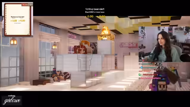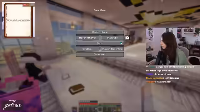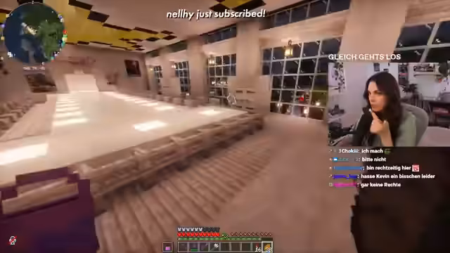 01:05:02Die Streamerin führt durch das liebevoll gestaltete Event-Setup in Minecraft, das einen Catwalk, Jurytische und Umkleidekabinen mit Spiegeln umfasst. Neue Poster und eine 'Dress of Undying'-Trophäe sind ebenfalls Teil der Dekoration. Sie zeigt die Jurytische mit den Markierungen 1, 2 und 3 sowie weitere Poster mit Highlights vom letzten Jahr. Technische Probleme mit der Maus und Lags treten weiterhin auf, was zu kurzzeitigen Verbindungsabbrüchen führt. Trotz dieser Herausforderungen wird versucht, die Probleme zu beheben, um einen reibungslosen Ablauf des Events zu gewährleisten. Die Streamerin bleibt optimistisch und freut sich auf den Start, auch wenn sie weiterhin nervös ist, die hohen Erwartungen zu erfüllen.