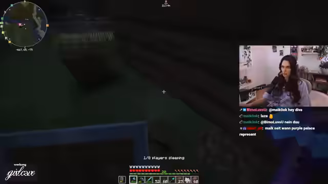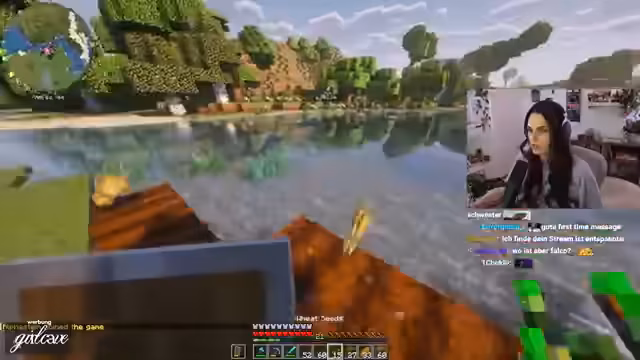 00:16:45Nachdem die Musik im Hintergrund angepasst wurde, konzentriert sich die Streamerin auf die Hauptaufgabe des Tages: das Zünden des Nether-Portals und dessen Verbindung zur Nether-Decke. Sie erntet zunächst Weizen und versucht, das Problem ihres Daches zu ignorieren, das ihrer Meinung nach "fertig" ist, obwohl es noch nicht ganz so aussieht, wie es sein sollte. Die Streamerin ist frustriert über die Platzierung von großen Blöcken in der Nähe ihres Hauses, die von anderen Spielern dort hingesetzt wurden, und bezeichnet den Bereich als "Sexhain", da sie befürchtet, leises Sex-Rollenspiel im Hintergrund hören zu müssen. Sie äußert den Wunsch, dass Masat, eine Freundin, wieder auf die Insel kommt, um ihr Gesellschaft zu leisten und die Situation erträglicher zu machen. Sie entdeckt, dass das Boot, das zum Hochkommen auf die Nether-Decke dienen sollte, verschwunden ist und versucht, es wiederzufinden und richtig zu platzieren, was sich als schwierig erweist.