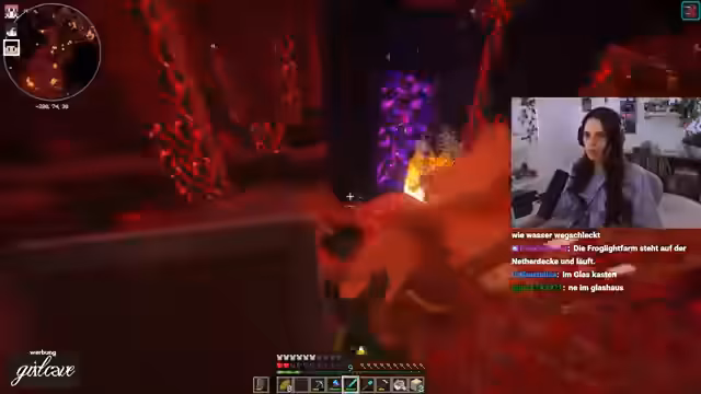 02:06:52Nachdem die Arbeit an der Wollfarm beendet ist, möchte der Streamer Froglights für ein Bauprojekt besorgen. Es stellt sich heraus, dass Eli und JoCraft bereits eine Farm dafür eingerichtet haben. Bei dem Versuch, die Froglights zu erreichen, stößt der Streamer auf Probleme mit dem Nether-Portal und landet im normalen Nether, wo er sofort angegriffen wird und stirbt. Dies führt zu Verwirrung über die korrekte Nutzung der Portale, da Schilder wie „nicht benutzen“ anscheinend ignoriert werden sollen. Nach weiteren Schwierigkeiten gelingt es dem Streamer schließlich, die Froglight-Farm auf der Nether-Decke zu finden und die benötigten Gegenstände zu erhalten. Die Erfahrung wird als chaotisch und frustrierend beschrieben, aber letztendlich erfolgreich.