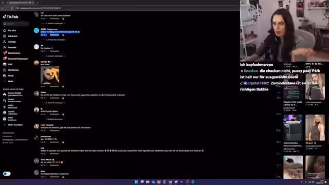 00:21:39Der Stream wechselt zu einer Betrachtung aktueller, weltweiter Vorfälle, darunter Drohnenangriffe in Polen und politische Unruhen. Anschließend werden verschiedene TikTok-Videos gezeigt und kommentiert. Ein Fokus liegt auf einem besonders viralen und humorvollen Video, das die Streamerin als absoluten Fiebertraum bezeichnet und das ihr starken Lachen bereitete.