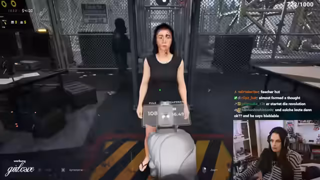 00:20:01Die Streamerin schildert die vergangene Krankheitswoite in der ihr Freund Max erkrankt war und sie sich um ihn kümmern musste, während selbst auch unter Kopfschmerzen litt. Sie beschreibt, dass ihr Kummer über eine mögliche eigene Erkrankung in einen "Late-Stage-Capitalism"-Angstzustand mündete, da sie ihren Job als Streamerin nicht ausfallen lassen kann. Sie warnt jedoch, dass Max' Krankheit im Vergleich zu ihrer eigenen leichten Erkältung stand und gibt den "Crisis Averted"-Signal, da Max wieder genesen ist.