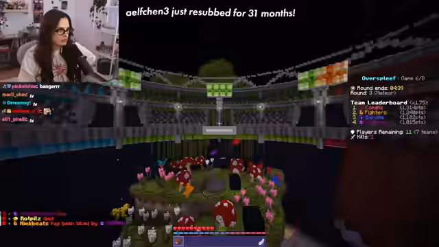 03:51:13Das Spiel beginnt mit einem chaotischen Durcheinander. Mehrere Spieler werden frühzeitig eliminiert oder sterben durch Abstürze in die Leere. Die Kommunikation unter den Teammitgliedern ist hektisch und wenig koordiniert, was zu weiteren schnellen Toden führt. Taminas Versuche, durch strategisches Ausweichen und Abgraben von Blöcken zu überleben, scheitern oft an schlechten Platzierungen und unvorhersehbaren gegnerischen Aktionen, was sie frustriert und sie das Spiel als 'rigged' bezeichnet.