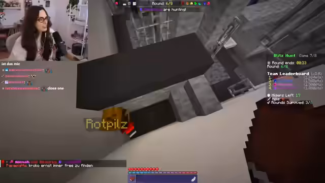 02:14:53Nach einer verlorenen Runde analysiert das Team die Ursachen und zieht Lehren daraus. Mienah bedauert, dass sie durch Hyping abgelenkt war und dadurch einen Delay im Kopf hatte. Es wird überlegt, die Rollen zu tauschen, damit Mienah wieder Medic spielt, da sie diese Rolle zuvor besser ausgefüllt hat. Trotz der Niederlage bleibt das Team optimistisch und konzentriert sich auf die kommenden Spiele. Es wird festgestellt, dass sie sich bereits in den Top 4 etabliert haben. Mienah äußert den Wunsch, dass die grünen Teams ausgeschaltet werden müssen. Es wird überlegt, wie man Kevin und sein Team psychologisch unter Druck setzen kann, um ihre Leistung zu beeinträchtigen. Mienah schlägt vor, Marsha einzuschalten, um Kevin zu nerven. Die nächsten Spiele werden besprochen, darunter Oberspleef und Party, wobei Party als nächstes gespielt wird.