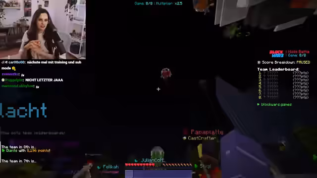 03:47:58Nach dem Ende des Spiels 'Trailblazers' äußert die Streamerin ihre Unzufriedenheit mit ihrer eigenen Leistung, obwohl sie einige Dropper- und Elytra-Level abschließen konnte. Sie bedauert, dass sie einige wichtige Aspekte des Spiels zu spät entdeckt hat und dass sie nicht in der Lage war, mehr Punkte für das Team zu sammeln. Trotz der enttäuschenden Leistung bleibt das Team optimistisch und konzentriert sich auf die kommenden Spiele. Es wird die Bedeutung von Teamarbeit und gegenseitiger Unterstützung betont, um in den nächsten Runden besser abzuschneiden. Die Streamerin kündigt an, dass sie kurz auf die Toilette gehen wird, bevor die nächsten Spiele beginnen, und das Team plant, eine Strategie für die kommenden Herausforderungen zu entwickeln.