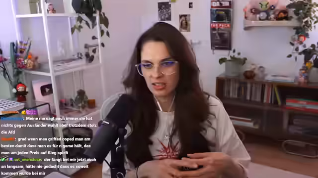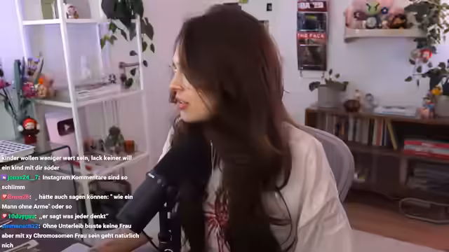 06:23:35Die Streamerin spricht darüber, dass sie ihre Meinung gesagt hat und es weird findet, wie manche Leute so crazy hinterher sind, ihre Meinung zu sagen, wenn die negativ ist. Sie würde niemals jemandem den Tag versauen, nur um ihre Meinung zu sagen, sondern schickt das dann vielleicht privat irgendeiner Freundin. Konstruktive Kritik ist natürlich etwas anderes. Die Streamerin hat noch nie das Bedürfnis gehabt, jemandem zu sagen, dass er scheiße aussieht. Sie hat ein Sideboard in einem Vintage-Laden namens Paar Mono gekauft. Am Ende sind es wahrscheinlich übelst traurige Leute und die projizieren auch in der Regel ihre eigenen Unsicherheit. Die Streamerin spricht über die Diskrepanz zwischen dem Verhalten online und im echten Leben. Sie hatte schon Nachrichten per DM bekommen und darauf geantwortet, woraufhin die Person sich entschuldigte und sagte, sie hätte nicht gedacht, dass die Streamerin das lesen würde. Sie hat ihre Popmart-Items über die Popmart-Seite selbst bestellt oder auf Messen geholt. Die Streamerin löscht ihre Kommentare und richtet ihr Social-Media-Profil so ein wie ihr Zimmer, weil sie da nur Sachen drin haben will, die ihr Spaß machen.