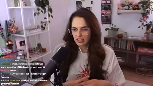 06:15:21Die Streamerin betont, dass sie ihren Content als Safe-Space nutzen möchte. Sie würde niemandem die Hand geben, der Frauen oder Transpersonen ablehnt. Sie kritisiert Markus Söders Aussage über die Autoindustrie und Frauen. Es wird ein Video gezeigt, das konservative Stimmen in den Medien verteidigt. Die Streamerin ist dankbar für ihre Zuschauer und betont, dass sie auf viele Sitcoms ähnlich reagiert. Sie findet, dass man leider eine Minderheit ist. Die Streamerin kritisiert, dass Leute abfällige Kommentare schreiben und dann jammern, wenn sie genauso behandelt werden. Sie löscht Kommentare, die sie unlustig findet und zerreißt ihren Lip Liner und Mäntel. Die Streamerin zitiert Julia Fox, dass negative Kommentarschreiber mit ihrer Scham leben müssen. Sie lässt manche Kommentare stehen, wenn die Schreiber dafür geratioed werden.