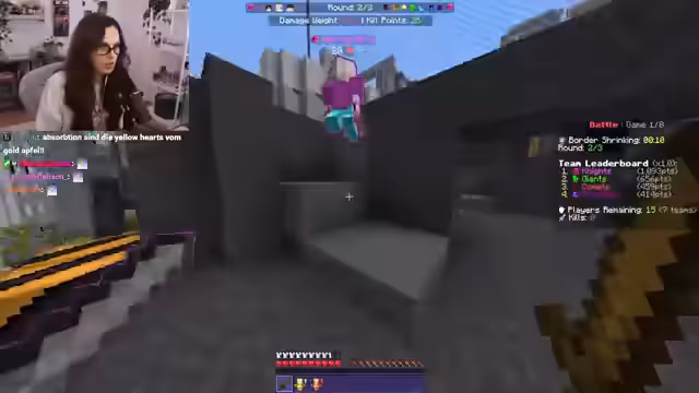 02:07:02Das Team gewinnt eine Runde des Minecraft-Turniers und feiert ihren Erfolg. Mienah betont die Wichtigkeit ihrer Fähigkeit, Schaden auszuteilen und schlägt vor, für die nächste Runde wieder Medic zu spielen. Sie lobt ihre Mitspieler für ihre Heilfähigkeiten und schlägt vor, diese Strategie beizubehalten. Für die nächste Runde wird nach leichten Gegnern gesucht, wobei entschieden wird, nach rechts zu gehen. Mienah wählt versehentlich das falsche Kit aus, was zu Besorgnis führt. Trotzdem wird beschlossen, direkt zum Capture-Punkt zu gehen. Das Team beobachtet die Gegner und plant, sie anzugreifen. Mienah gibt zu, die Funktionsweise von 'Splash Absorption' nicht vollständig zu verstehen. Das Team erobert einen Punkt und konzentriert sich darauf, weitere Capture-Punkte zu sichern.