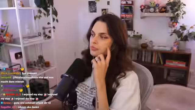03:15:38Die Streamerin nutzt den Stream, um mit der Community zu interagieren. Sie beantwortet Fragen zu verschiedenen Themen wie Partnerschaften und dem Zusammenziehen mit dem Partner. Sie gibt Tipps, dass es wichtig ist, dass jeder Partner ein eigenes Leben führt und das Zusammenziehen eine Bereicherung, nicht die komplette Lebensfüllung sein sollte. Sie erwähnt ihre Vorfreude auf den Urlaub mit der Familie und Leseprojekte.