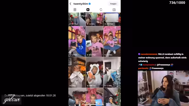 01:07:02Der Streamer diskutiert zwei virale Reels, in denen scheinbar Gucci-Taschen mit einem Wert von 700 Euro verlost wurden. Nach Kontaktierung der Gewinnerin stellt sich heraus, dass die Organisation intransparent ist: Es wurden verschiedene Testreels mit unterschiedlichen Versprechen gemacht, aber nur ein einziger Gewinner ausgesucht, der den Wert der angegebenen 700 Euro gar nicht kennt. Dies führt zu einer grundsätzlichen Diskussion über die Legalität und Moral solcher Aktionen. Die Influencerin versucht, die Situation mit einem Fake-Account zu managen, hat aber offenbar Angst, als sie vom Streamer kontaktiert wird.