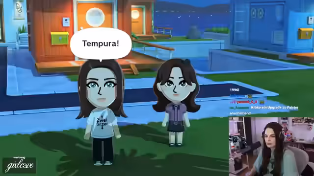 03:23:09Die Streamerin zeigt begeistert, wie sich zwei Charaktere anfreunden und auf einer Wipke sitzen. Sie beschreibt dies als magisch und süß. Es folgt eine Diskussion über mögliche Gesprächsthemen für Charakterbeziehungen, darunter das Spiel Minecraft. Die Streamerin stellt Charaktere einander vor und versucht, neue Freundschaften zu initiieren, indem sie Begegnungen arrangiert und passende Themen für Gespräche sucht.