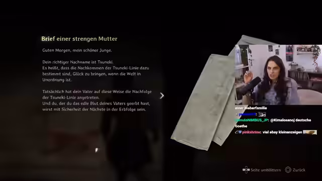 02:38:17Nach dem Bossfight stößt der Streamer auf narrative Elemente, darunter eine Notiz des Hausmädchens, die von einer arrangierten Ehe und familiären Konflikten handelt. Er sucht nach versteckten Gegenständen, um ein größeres Rätsel zu lösen, das mit drei Wappen zusammenhängt. Die Orientierung ist schwierig, da viele Türen blockiert sind oder falsche Wege führen. Gleichzeitig finden sich Hinweise auf ein Opfer im Clan, das die Story tiefer verweben.
