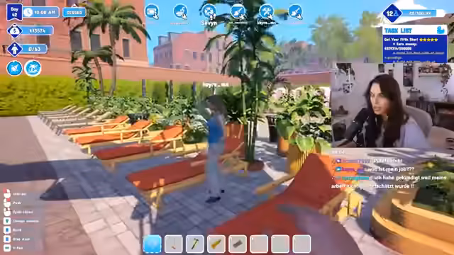 05:22:31Der Fokus verschiebt sich zur aktiven Verwaltung des eigenen 'Pussy Park'. Der Streamer stellt fest, dass es nun weibliche Arbeitskräfte gibt, und ändert sein Spielcharakter-Geschlecht per Spiegel-Swapper, um diese Funktion voll auszunutzen ('Endlich Pussys im Pussy Park!'). Es folgt ein intensives Management-Gameplay: einstellen und feuern von Mitarbeitern (z.B. Flora, Lazy, Crystal, Kyra), Auffüllen von Inventaren (Eis, Limonaden, Gläser, Granola-Bars), und die Kassenführung. Ziel ist es, die Operation zu optimieren und den Profit zu steigern, während gleichzeitig 'Perverse' aus dem Park geworfen werden müssen.
