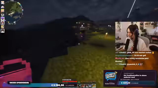 06:02:46Ein Spieler hat wichtige Gegenstände, darunter ein Lüthra, verloren, nachdem er von einem Zombie getötet wurde, der die Gegenstände an sich genommen hat. Es stellt sich heraus, dass die Gegenstände aufgrund eines technischen Fehlers in einem nicht geladenen Chunk despawned sind und nicht zurückgeholt werden können. Die anderen Streamer zeigen sich hilfsbereit und bieten an, neue Gegenstände zu besorgen, darunter ein neues Lüthra von Marcel. Trotz dieser unglücklichen Situation bleibt die Stimmung positiv, und es wird weiter an der Charity-Aktion gearbeitet. Am Ende des Streams wird bekannt gegeben, dass durch die gesammelten Spenden drei Kindern Wünsche erfüllt werden konnten, was als großer Erfolg gefeiert wird. Die Streamer bedanken sich bei allen Unterstützern und Zuschauern für ihre Beteiligung und betonen die Bedeutung der Community. Der Stream endet mit einem positiven Ausblick auf zukünftige Projekte und der Hoffnung auf eine baldige Wiederholung der Charity-Aktion.