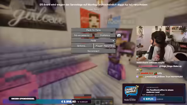 00:45:09Kurz vor Beginn der Events treten erhebliche Serverprobleme und technische Schwierigkeiten auf, die den reibungslosen Ablauf gefährden. Es wird berichtet, dass viele Spieler, die einen VPN installiert haben, um Lags zu vermeiden, nun nicht mehr auf den Server zugreifen können oder starke Verzögerungen erleben. Der Streamer versucht, Unterstützung von Homey zu erhalten, der gleichzeitig für mehrere Spieler die technischen Probleme beheben muss. Diese Situation führt zu Frustration und Verzögerungen, da die geplante Eröffnung des Infinity Castle und die Vorstellung der Teilnehmer aufgrund der technischen Einschränkungen nicht wie vorgesehen stattfinden können. Trotz der Schwierigkeiten wird versucht, die Stimmung aufrechtzuerhalten und die Community um Geduld gebeten, während an einer Lösung gearbeitet wird.