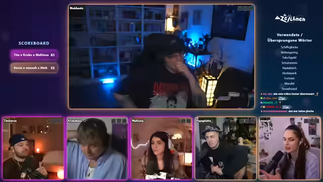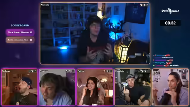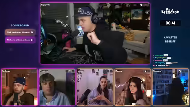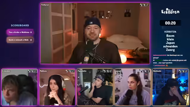 01:17:19Es folgt eine kurze Anmoderation, in der die Regeln nochmals erklärt werden, bevor das Spiel offiziell beginnt. Es wird betont, dass es sich um einen entspannten Spielerabend handeln soll, bei dem der Spaß im Vordergrund steht. Die erste Kategorie, die gewählt wird, ist "Erklären", mit einer Zeitbegrenzung von 80 Sekunden. Kroko und Mazat müssen raten, und die verbotenen Wörter werden angezeigt. In der ersten Runde werden Begriffe wie "Sex", "Hallo" und "Bonsai" erklärt, wobei die verbotenen Wörter eine zusätzliche Herausforderung darstellen. Es wird festgestellt, dass die Anzeige der verbotenen Wörter den Schwierigkeitsgrad erhöht und möglicherweise wieder deaktiviert wird. Im weiteren Verlauf des Spiels werden verschiedene Kategorien wie Zeichnen und Pantomime gespielt, wobei die Teams regelmäßig wechseln. Es kommt zu lustigen Situationen und Missverständnissen, insbesondere bei der Erklärung von Begriffen und dem Umgang mit den verbotenen Wörtern. Die Chat-Integration wird ebenfalls genutzt, um die Reaktionen der Zuschauer einzubeziehen.