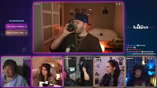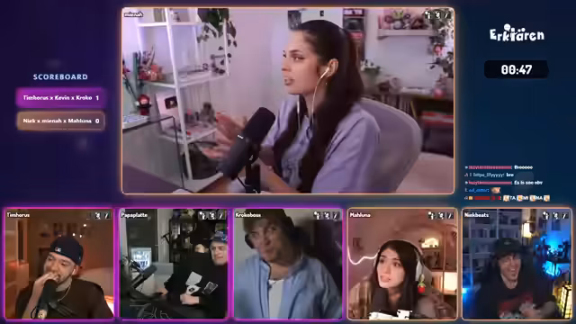 00:53:40Die Streamerin bedankt sich bei den Subs und bereitet sich auf die Activity Gameshow vor. Es wird erwähnt, dass Niek nicht normal sei. Es wird kurz über ein mögliches Koch-Battle zwischen Marsha und der Streamerin gesprochen, eventuell sogar in einem Männer-gegen-Frauen-Format mit Max und Kevin. Die Streamerin erklärt, warum ihre Nase die ganze Zeit läuft und entschuldigt sich für das Geschniefe. Sie gibt Auskunft über ihre Haarstyling-Produkte und geht auf Zuschauerfragen ein. Technische Vorbereitungen für die Gameshow werden getroffen, darunter das Einrichten von Szenen und Browserquellen in OBS. Es gibt Probleme mit der Kamera, aber schließlich klappt alles. Die Streamerin tritt dem Discord-Kanal bei, in dem die Gameshow stattfindet, und freut sich auf die Herausforderung. Sie äußert die Hoffnung, dass alles gut gehen wird und erwähnt, dass sie keine Ahnung hat, in welchem Team sie ist. Kevin und Nick sind in einem Team. Die Streamerin findet es schön, dass Nick mit seiner normalen Kamera dabei ist und fragt ihn, ob er jetzt VTuber sei. Sie gibt Anweisungen zum Setup und erklärt, dass es eine Player-Seite gibt, die nicht für den Stream bestimmt ist. Kroko war die ganze Zeit da und ist nicht zu spät, weil er Parfum rankt.