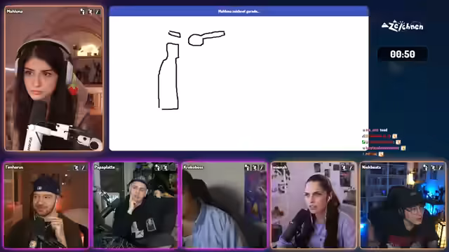 02:07:29Der Stream beginnt mit einer intensiven ersten Runde des Activity-Spiels, bei den Teilnehmern versuchen, Begriffe durch Zeichnen oder Pantomime zu raten. Die Teams kämpfen um Punkte und erleben sowohl leichtere als auch anspruchsvolle Begriffe. Einige Begriffe wie 'Segelboot' und 'Pilze' werden korrekt geraten, während andere wie 'Falschgeld' übersprungen werden. Das Verwirrspiel fordert die Teilnehmer heraus und sorgt für ein knappes Ergebnis zwischen den Teams.