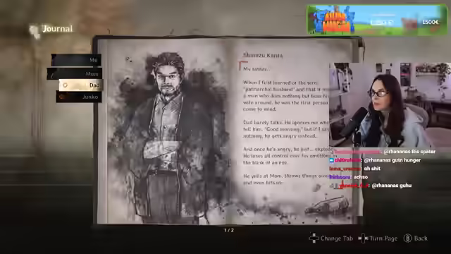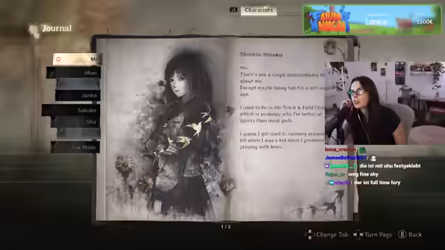 02:55:40Es taucht erneut der Gegner mit den Tabi-Socken auf. Die Streamerin versucht zu fliehen. Mehrere Gegner greifen gleichzeitig an, was als unfair empfunden wird. Trotz Schwierigkeiten gelingt es, diesem Abschnitt zu überleben. Die Streamerin äußert den Wunsch nach einer Pause. Es wird über den Spitznamen eines Bekannten gesprochen und eine Anekdote erzählt. Nach einer kurzen Pause setzt die Streamerin das Spiel fort. Es werden neue Charaktere vorgestellt und ihre Beziehungen zueinander analysiert. Die Streamerin äußert Misstrauen gegenüber einer bestimmten Figur und vermutet, dass diese etwas verbergen könnte. Es wird ein Tagebucheintrag gefunden, der Einblicke in die Vergangenheit der Protagonistin und ihrer Schwester gibt. Die Streamerin muss sich erneut orientieren und den Weg zum nächsten Ziel finden. Es wird vermutet, dass ein Kampf bevorsteht.
