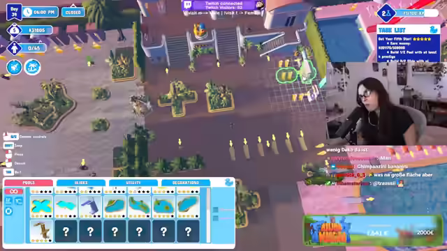 03:30:31Der Streamer spielte den Pussy Park Simulator, nachdem zuvor Silent Hill gespielt wurde. Es gab einige Herausforderungen im Spiel, wie zum Beispiel das Reinigen von Pools, in die gepinkelt wurde, und das Managen von Kundenwünschen nach Essen und Trinken. Der Park wurde erweitert, aber nicht in der ursprünglich gewünschten Richtung, was zu einigen Umplanungen führte. Es wurden neue Attraktionen hinzugefügt, und der Streamer versuchte, den Park funktionaler und ästhetischer zu gestalten, wobei der Fokus auf dem Erwirtschaften von Geld lag, um das Ziel von 500.000 Dollar zu erreichen. Es gab auch einige lustige Momente, wie zum Beispiel die Beobachtung von Leuten, die im Pool ertranken oder ausrutschten. Der Streamer experimentierte mit Dekorationen und versuchte, den Park ansprechender zu gestalten, wobei er sich auf die Funktionalität konzentrierte. Es gab auch Überlegungen zur Preisgestaltung und zum Skilltree, um den Park profitabler zu machen. Der Streamer erwähnte, dass der Park für 63 Personen Platz bietet, aber es waren nur 31 anwesend, und forderte die Zuschauer auf, "reinzuhauen".