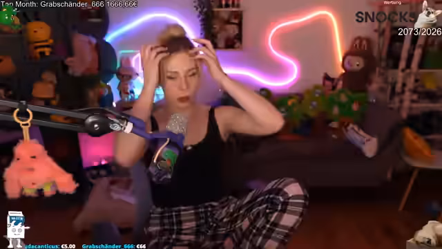 02:55:13Die Streamerin spielt das Spiel Flappy Bird, bei dem sie sehr nervös wird, als sie auf die Zahl 40 zugeht. Sie vergleicht sich mit anderen Spielern und ist erleichtert, besser als die Hälfte der Nutzer zu sein. Während des Spiels interagiert sie intensiv mit dem Chat, der sie mit Namen wie 'Sonja und Busch' oder 'Kupra-237' grüßt. Ihr persönlicher Rekord liegt bei 20 Punkten, und sie ist sichtlich überrascht, wie schnell sie dies geschafft hat.